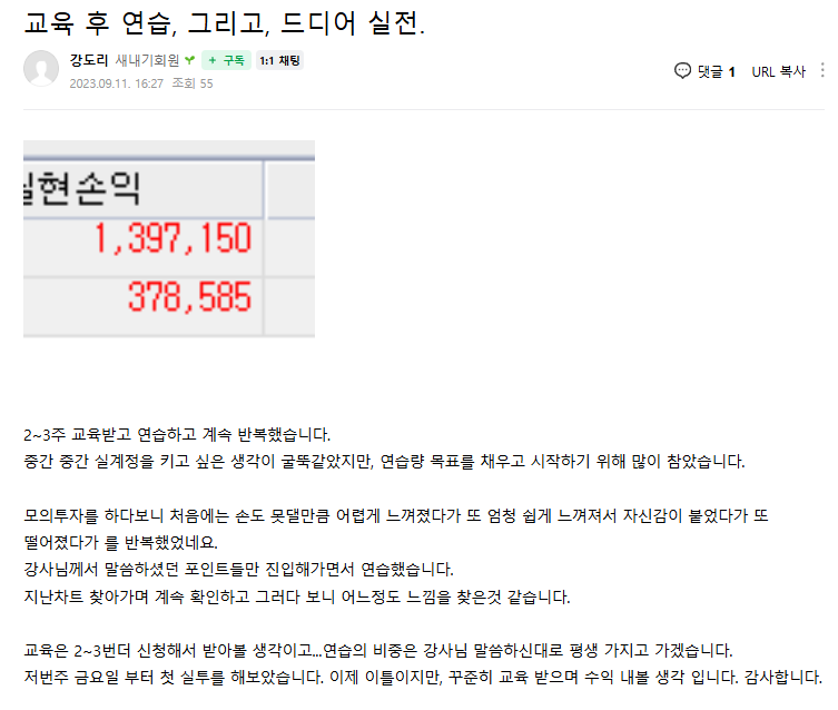 강의 후 인증글2 삼경해외선물은 최적의 거래 환경과 체계적인 무료 교육 프로그램을 통해 여러분이 천연가스 시장에서 자신감을 가지고 거래할 수 있도록 든든한 파트너가 되어 드릴 것입니다. 변동성이 큰 시장을 두려워하지 말고, 지식을 무기로 삼아 기회를 포착하시길 바랍니다.